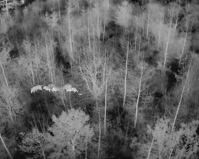 Im Jänner 2024 durfte ich das erste Mal auswärts ein Waldstück zur Nachsuche überfliegen und so die Handhabung und Steuerung zu perfektionieren. Anfang März war ich das erste Mal mit meiner Drohne unterwegs um zu prüfen, ob in einem Waldstück Wildschweine unterwegs sind. Auf den Bildern sieht man schön den Einstand der Rotten im Waldstück