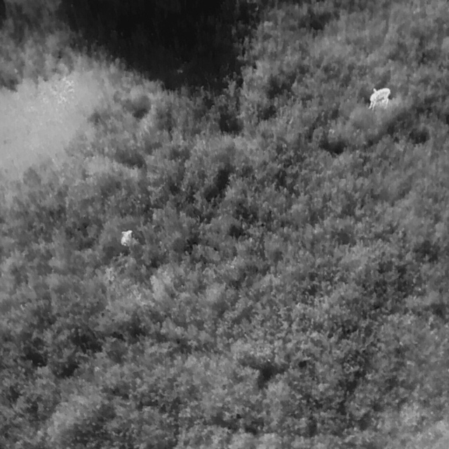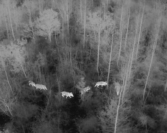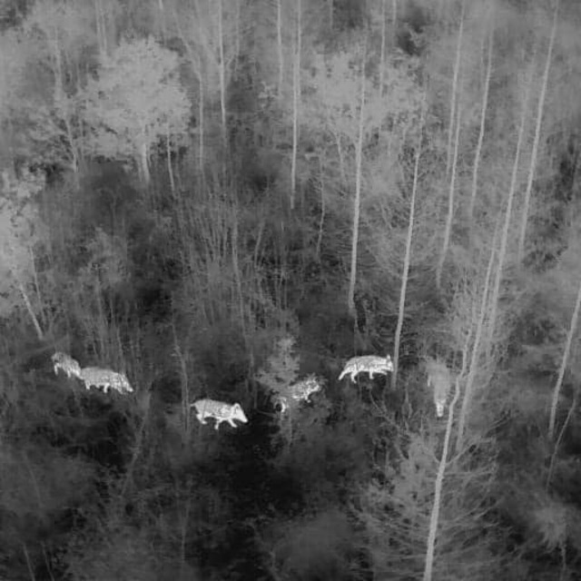 Im Jänner 2024 durfte ich das erste Mal auswärts ein Waldstück zur Nachsuche überfliegen und so die Handhabung und Steuerung zu perfektionieren. Anfang März war ich das erste Mal mit meiner Drohne unterwegs um zu prüfen, ob in einem Waldstück Wildschweine unterwegs sind. Auf den Bildern sieht man schön den Einstand der Rotten im Waldstück